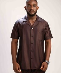 Brown short-sleeve Classic Guayabera shirt.